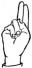 На ћирилици написано ПЕРИША БАРАЋ састоји се из 11 слова [?]. Исписано ћириличном једноручном азбуком за глувонеме: